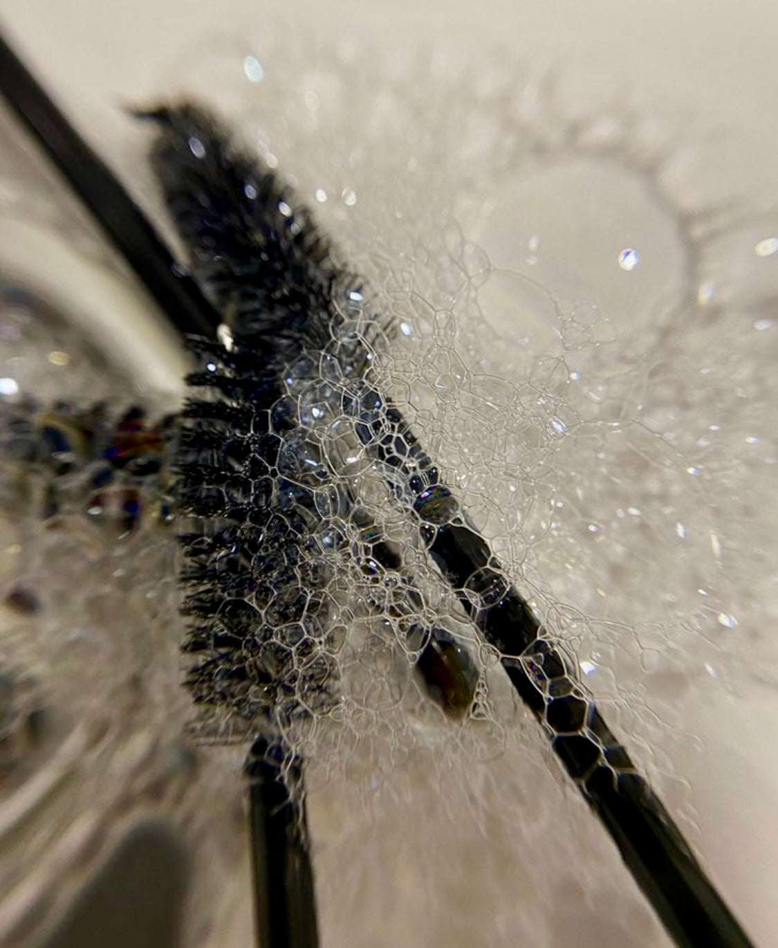 Apply a small amount to a damp brush, cleanse lashes gently, rinse with water, and pat dry.